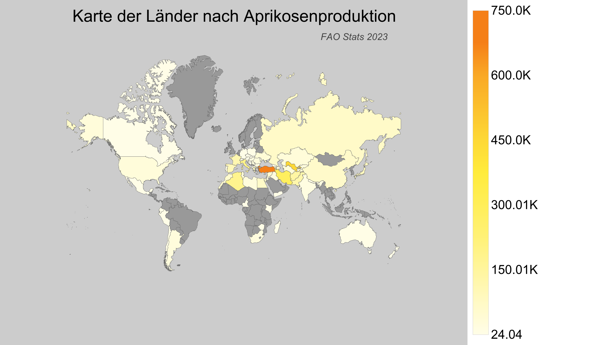 Aprikosen sind nicht nur wegen ihres saftigen Geschmacks beliebt, sondern auch aufgrund ihrer Bedeutung für die landwirtschaftliche Produktion und Wirtschaft in vielen Regionen weltweit. Sie gedeihen vor allem in gemäßigten Klimazonen und finden in vielen Teilen der Welt optimale Wachstumsbedingungen. Die Daten für das Jahr 2023 aus der Datenbank der Ernährungs- und Landwirtschaftsorganisation (FAO) bieten einen aktuellen Einblick in die weltweite Aprikosenproduktion.