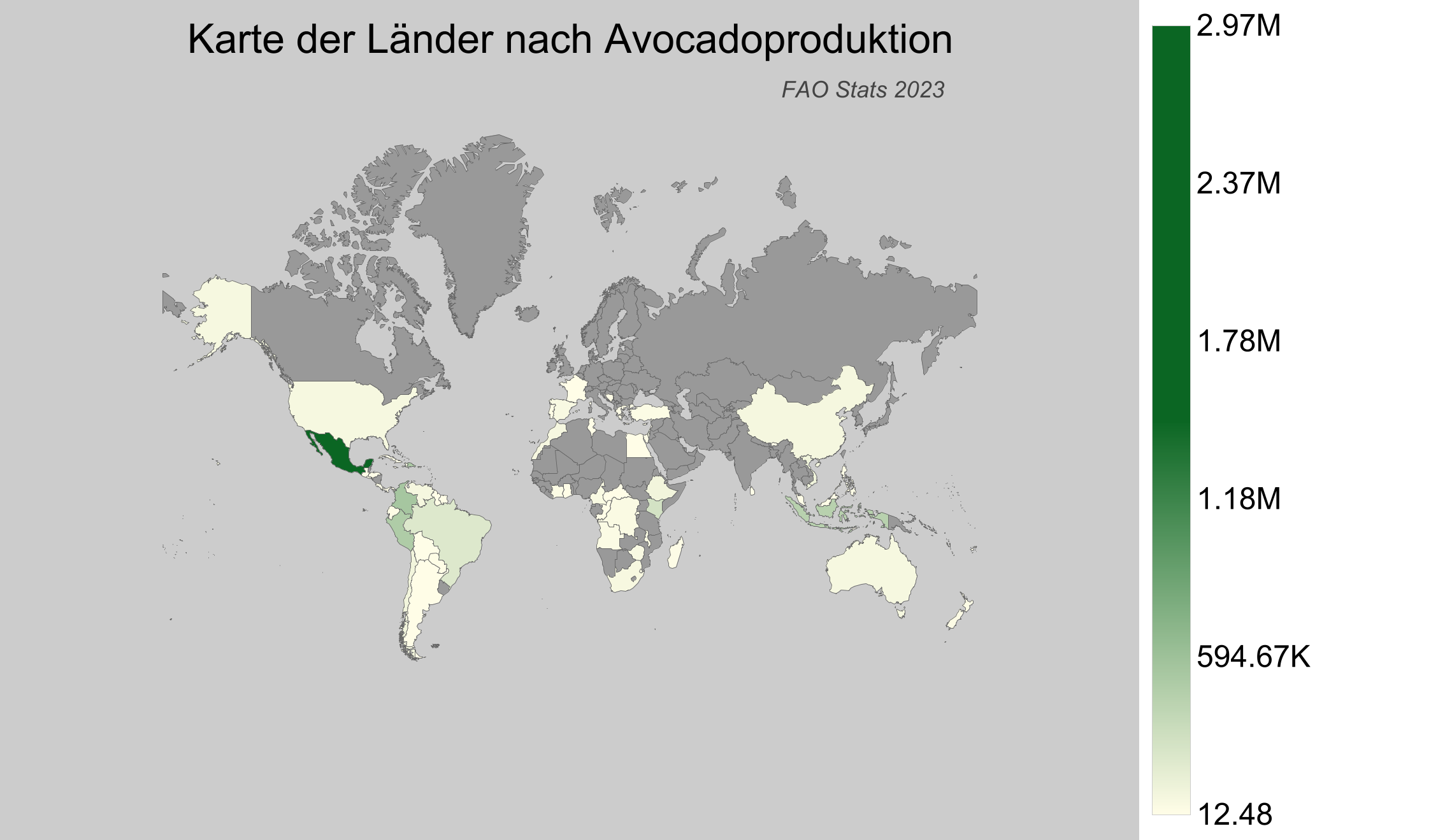 - Schweiz: Laut FAO-Statistiken produziert die Schweiz keine Avocados.