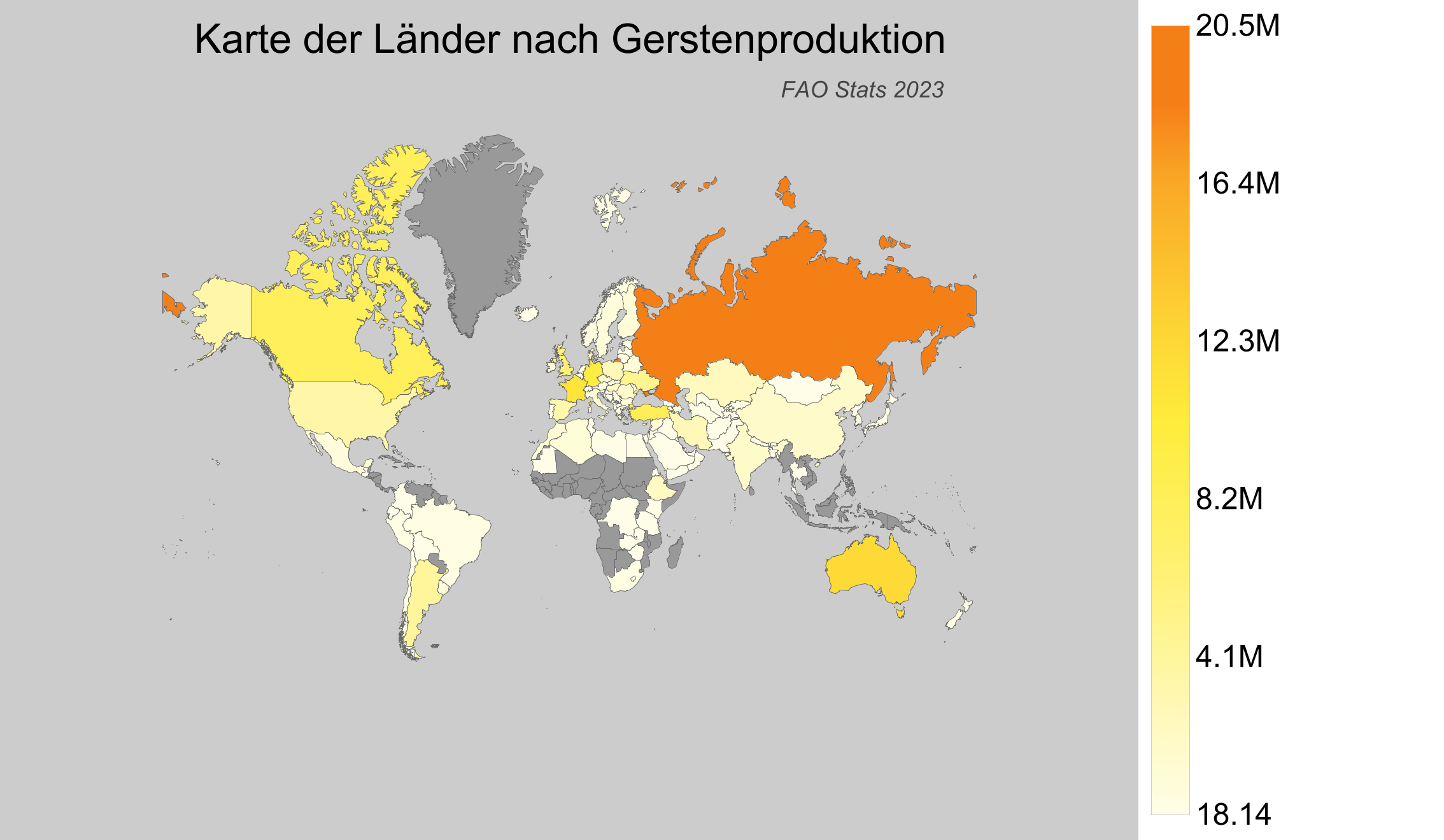 - Russische Föderation: Produziert etwa 20 Millionen Tonnen Gerste jährlich.