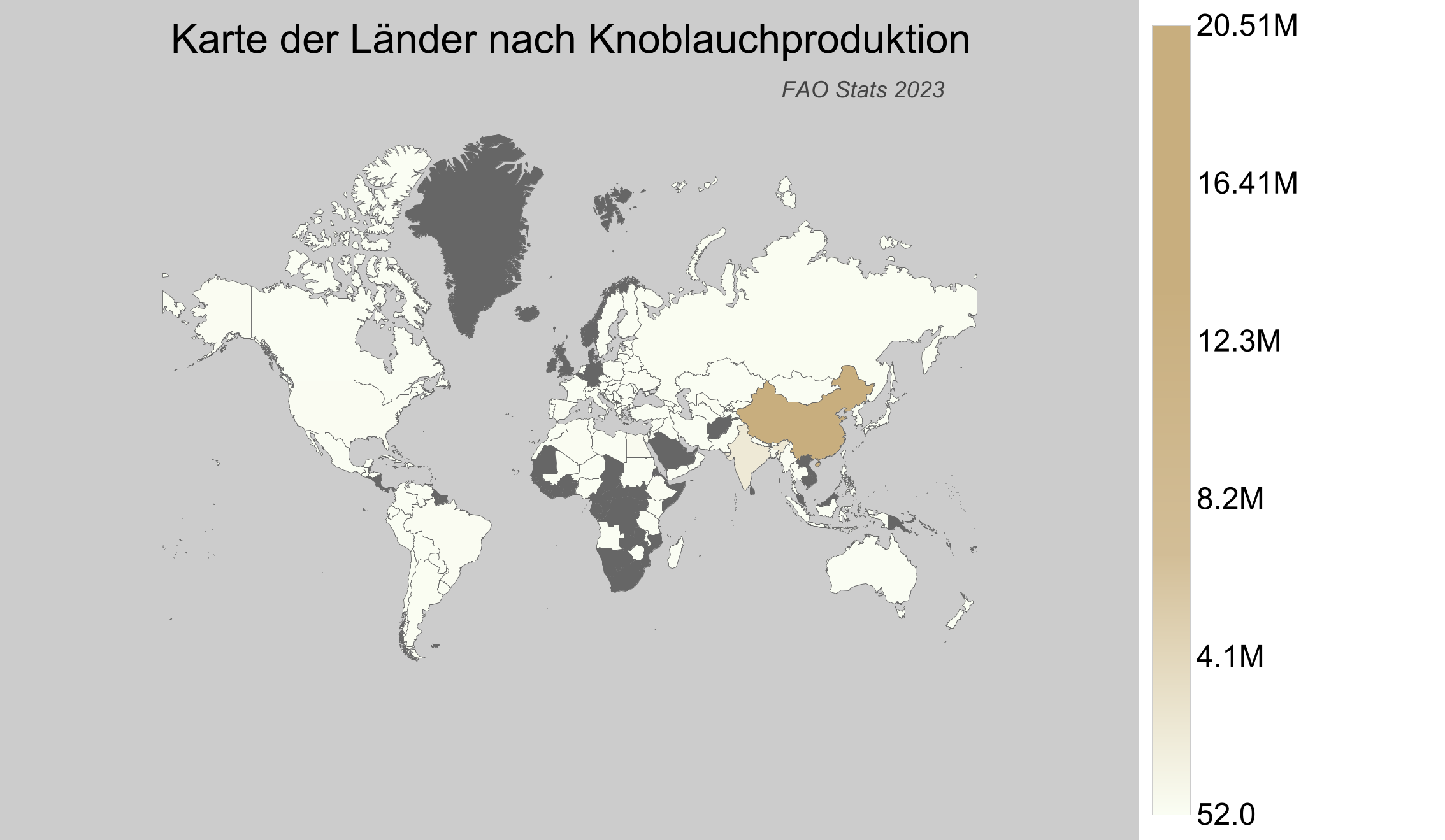 - China bleibt unangefochten der größte Knoblauchproduzent der Welt, mit etwa 20.51 Millionen Tonnen im Jahr 2023.