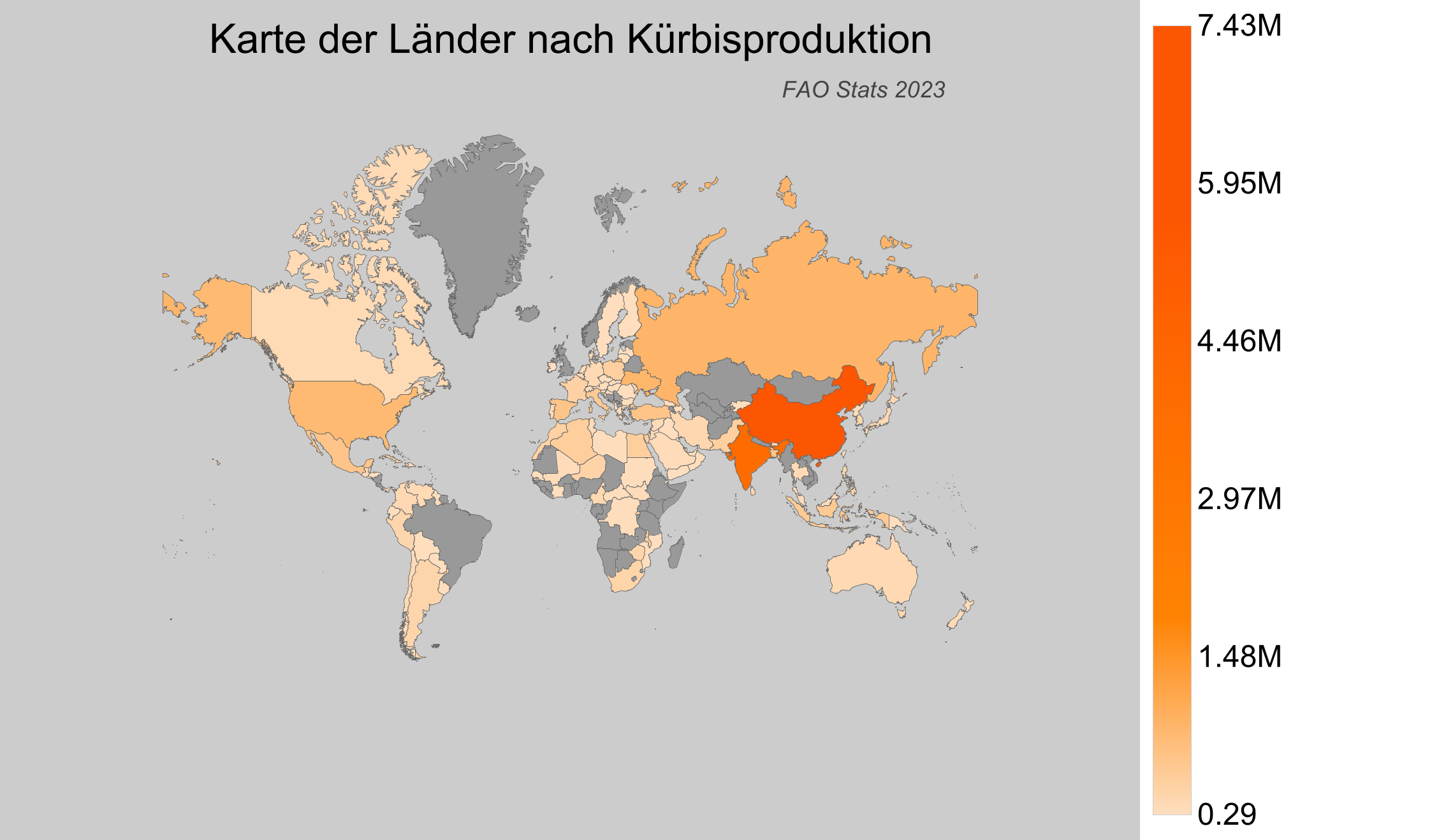 - Die geballte Produktion von China und Indien deckt zusammen über 50 % der weltweiten Kürbisproduktion ab.