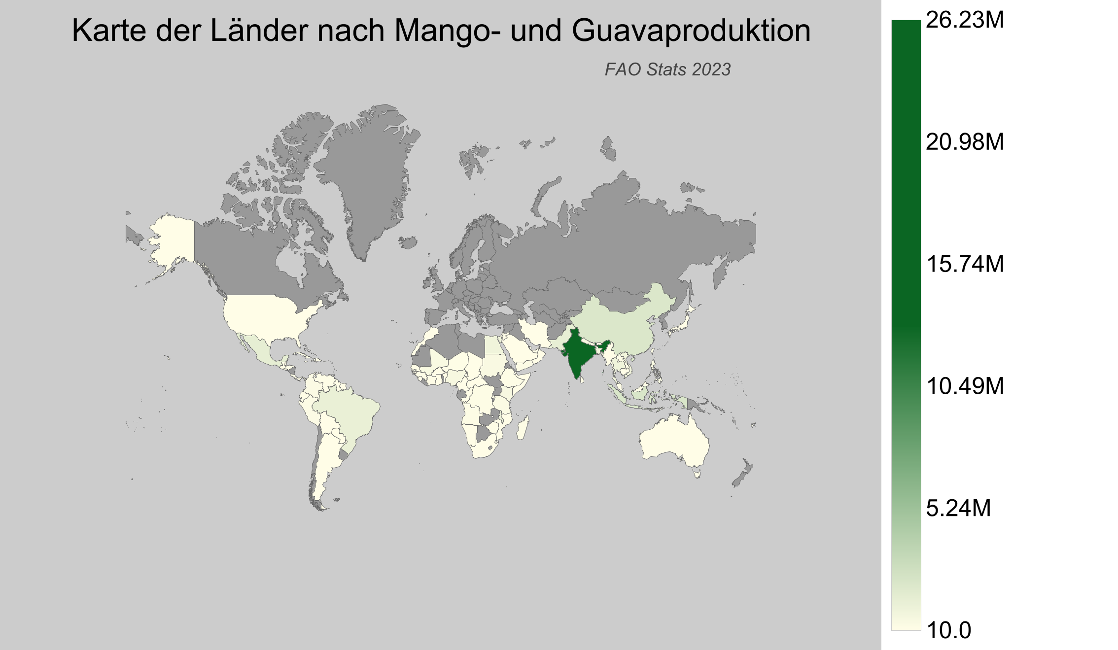 - Indien führt bei der Produktion von Mangos und Guaven mit rund 26 Millionen Tonnen.