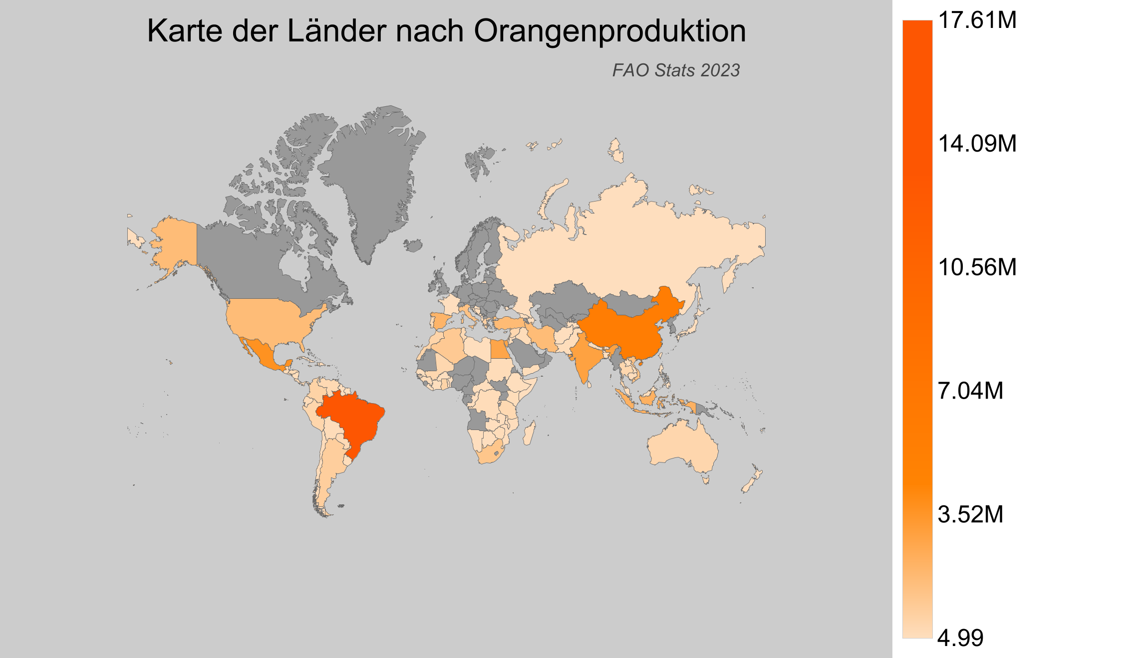 - Brasilien bleibt das führende Produktionsland mit etwa 17,6 Millionen Tonnen Orangen im Jahr 2023.
