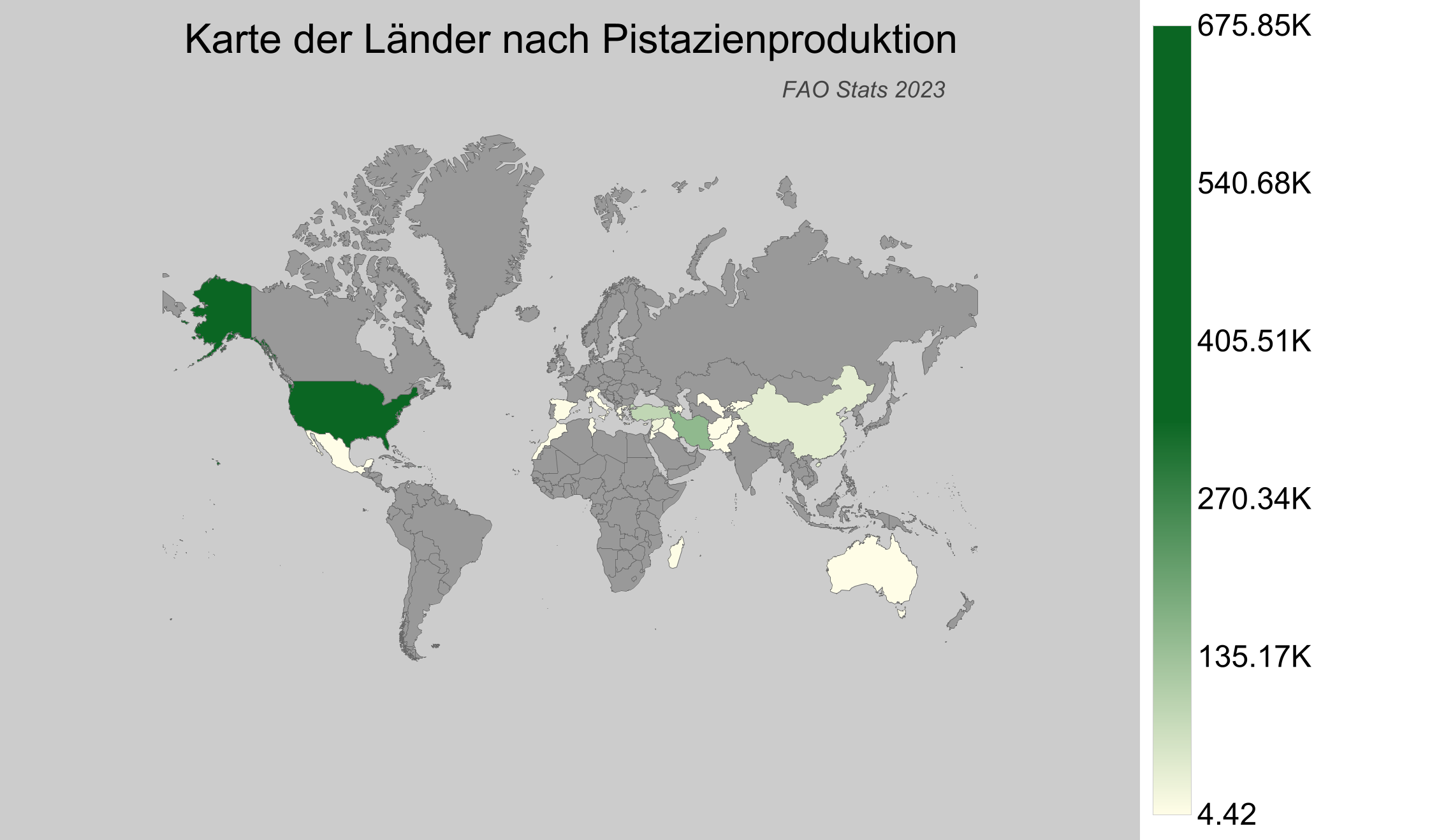 - Vereinigte Staaten von Amerika: produzierte etwa 675.850 Tonnen Pistazien im Jahr 2023.