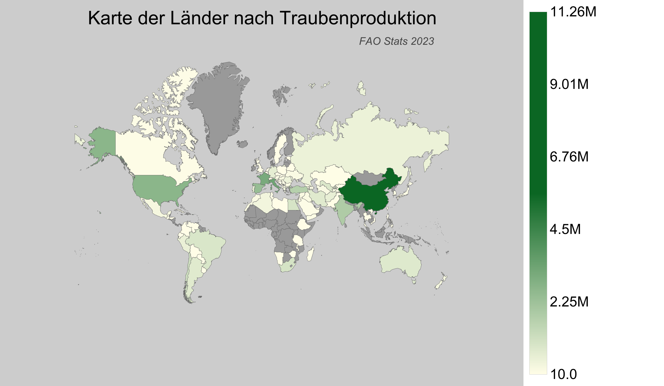- Italien folgt mit einer Traubenproduktion von etwa 6,67 Millionen Tonnen.