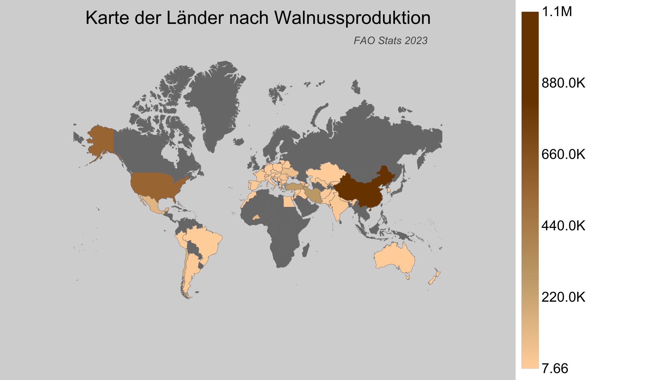 Die Walnuss ist eine bedeutende Nuss für die globale Landwirtschaft und Ernährung. Sie gedeiht am besten in gemäßigten Klimazonen und ist bekannt für ihren hohen Nährstoffgehalt und gesundheitliche Vorteile. Die Daten zur Walnussproduktion von 2023 stammen aus der Datenbank der Ernährungs- und Landwirtschaftsorganisation (FAO) und bieten einen Einblick in die neuesten Trends und Entwicklungen.