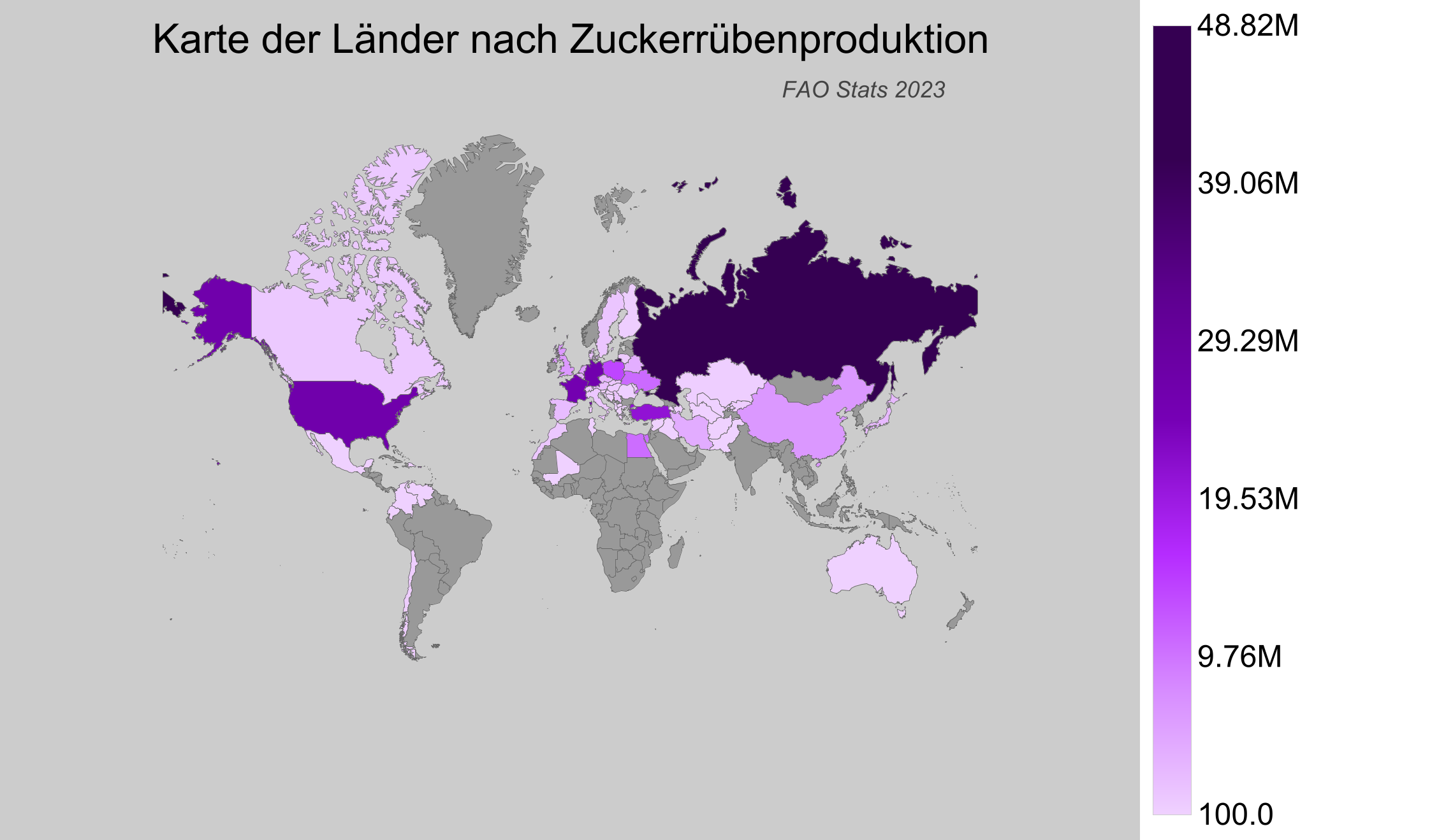 Zuckerrüben sind eine essentielle Pflanze für die globale Zuckergewinnung und haben Bedeutung für die Ernährungssicherheit und die industrielle Produktion. Sie gedeihen besonders gut in gemäßigten Klimazonen mit ausreichend Niederschlag und fruchtbaren Böden. Die hier präsentierten Daten beziehen sich auf das Jahr 2023, das laut der Datenbank der Ernährungs- und Landwirtschaftsorganisation (FAO) die aktuellste verfügbare Statistik bis 2025 darstellt.